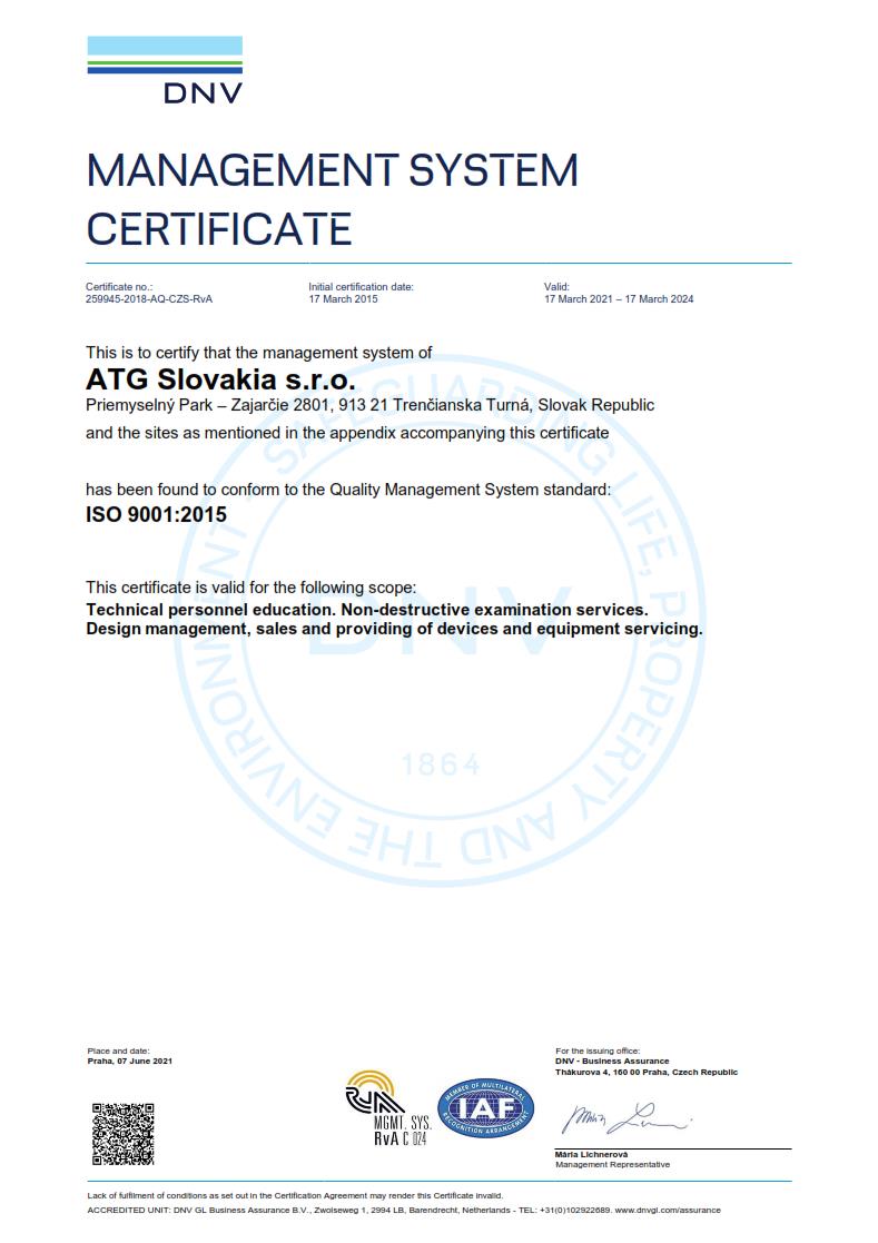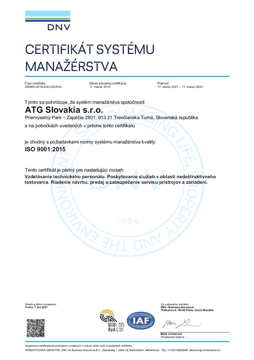 ATG Slovakia s.r.o. je dcérska spoločnosť ATG založená v roku 2002 (?), poskytujúca komplexné NDT riešenia hlavne na slovenskom trhu. Disponuje dvoma vlastnými FPI linkami v Žiari nad Hronom a Trenčíne, kde tiež prevádzkuje najväčšie NDT školiace stredisko na Slovensku, rovnako ako NDT laboratóriá.
